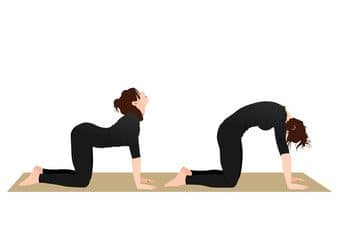Get on your hands and knees. Arch your back (Cow pose) and then round it (Cat pose), moving smoothly between the two positions. Repeat for 30-60 seconds.