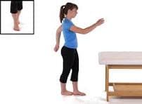 Stand straight with your eyes looking forward. Extend your left leg out in front of you, a few inches up off the ground. Hold this position for 10 to 15 seconds, and then repeat with your opposite leg. If you feel unsteady, stand next to a chair. Your long-term goal should be to stand on one leg for up to a minute without holding on to a chair for support. Eventually you may be able to stand on one leg as per the illustration.