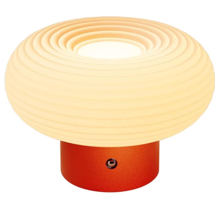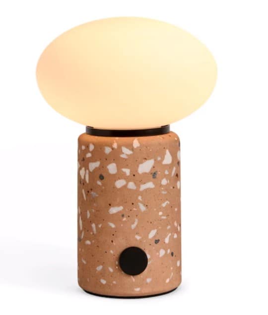 Casts a warm glow and sits on a terrazzo base. Rechargeable with its USB cable, this portable design can go anywhere indoors with you.