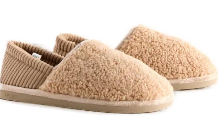 The slip-on mule design features a faux fur trim for a snug feel and are available in a variety of colours.