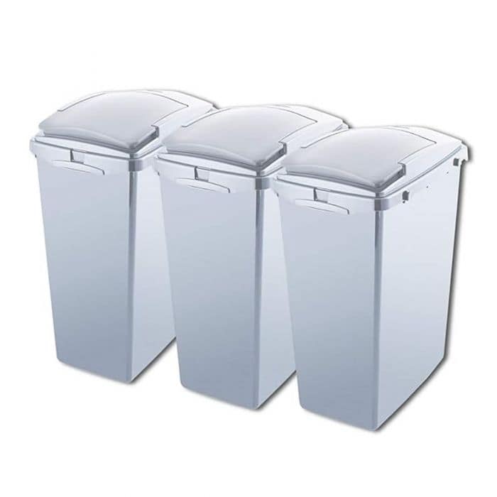 If you’re looking for a cheaper alternative, these bins as a set of three can be locked together and keep metal, glass and plastic separate.