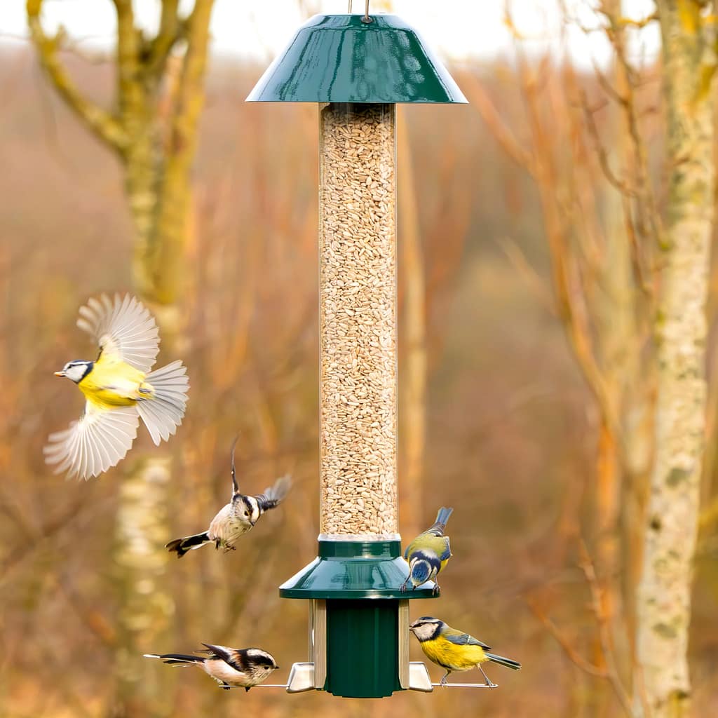 Here’s a bird feeder that stops squirrels because if anything heavier than a songbird lands on a perch, the feeding ports close and then reopens when the larger animal has left.
