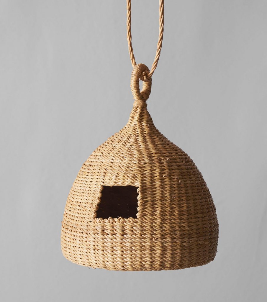 Handwoven by artisans in Ghana and designed to be hung from a sheltered position, either amongst branches or under an awning.