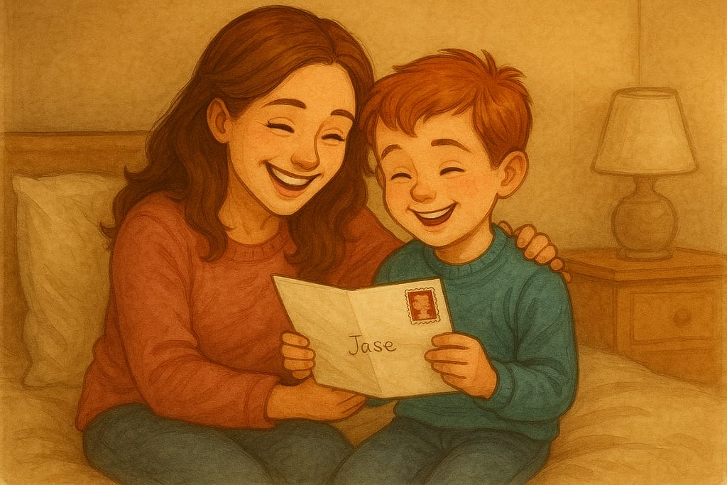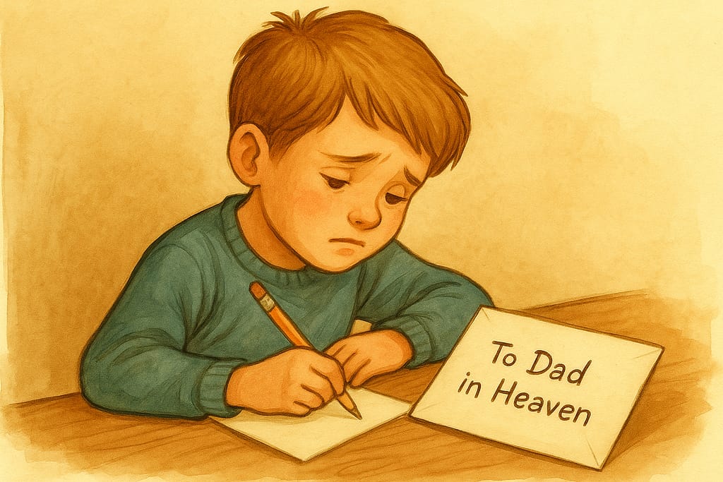 “Dear Jase, we have delivered your letter to your dad in heaven. It was a difficult journey, but rest assured, your message has been received. Keep writing to him whenever you want—he will always be watching over you.”