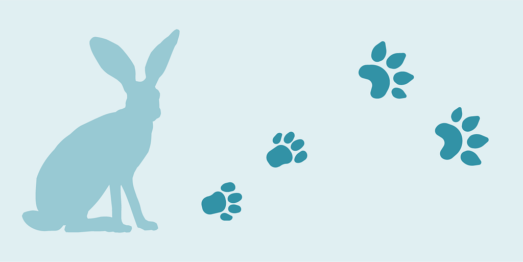 Hares, which live in farmland and grasslands, have large, powerful rear legs and smaller, efficient front feet that stabilise their movement. At full speed their front feet land one after the other while their rear feet reach forward to land in synchrony for a power-filled kick to drive them forwards. Their trail shows the hind feet landing in front of the fore feet.