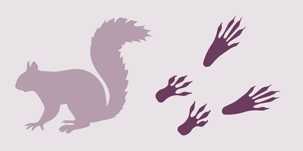 Squirrels have different numbers of toes on their fore and hind feet. They are also bounders but place their front feet in synchrony to maintain stability. Their bound is like that of a rabbit but their trick for escape is their superb ability to climb and leap between trees. A squirrels’ nest, called a dray, looks like an oversized football in the branches of a tree.